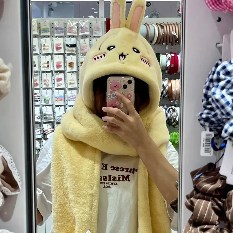 Аниме Chiikawa плюшевый шарф, шапка, перчатки, тройные Kawaii Usagi Hachiware, теплые осенне-зимние милые толстые праздничные подарки для девочек