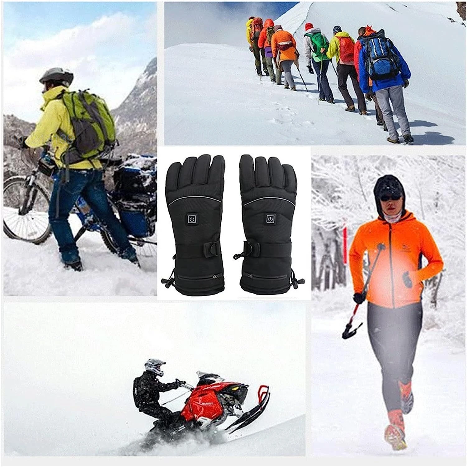 Перчатки с электрическим подогревом на батарейках, сохраняющие тепло, перчатки с сенсорным экраном, зимние уличные сохраняющие тепло, мотооборудование для катания на лыжах
