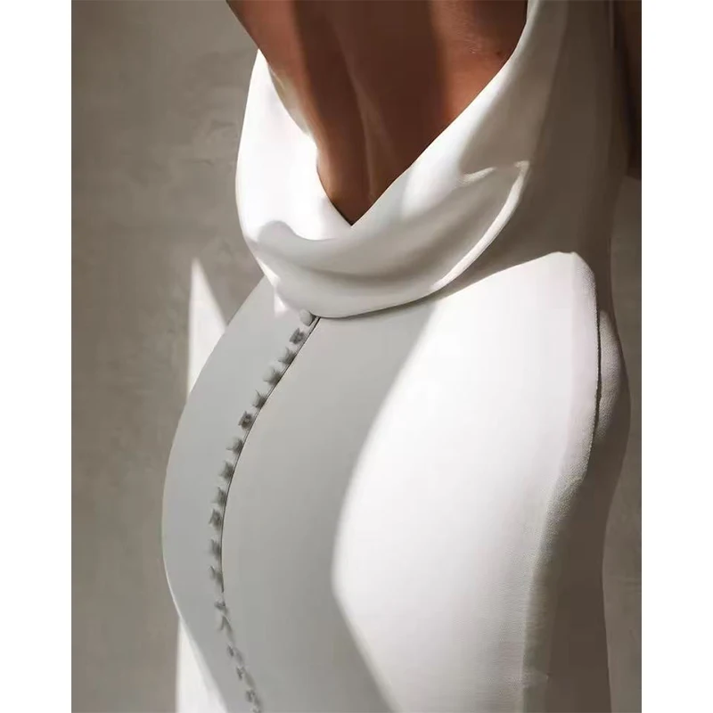 Сексуальное свадебное платье русалки с v-образным вырезом и открытой спиной, свадебное платье в стиле бохо, простое однотонное пляжное свадебное платье с длинным шлейфом и пуговицами Robe De Mariee