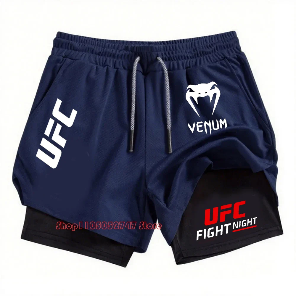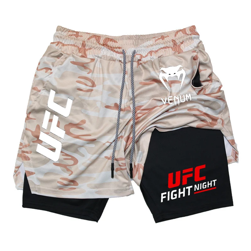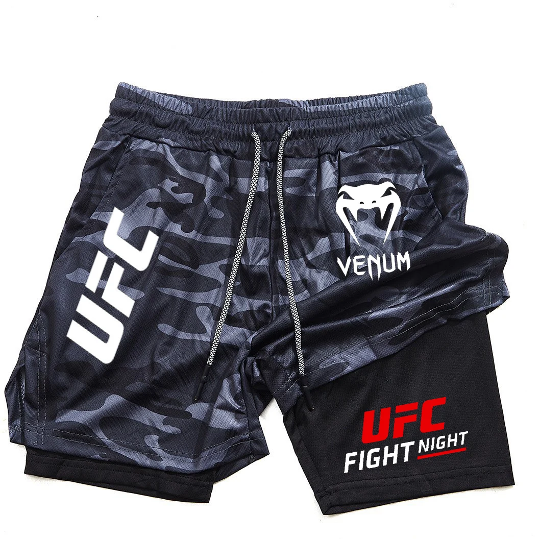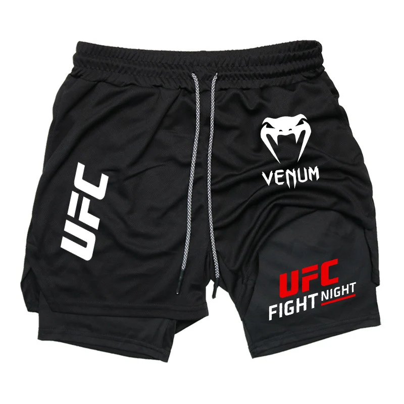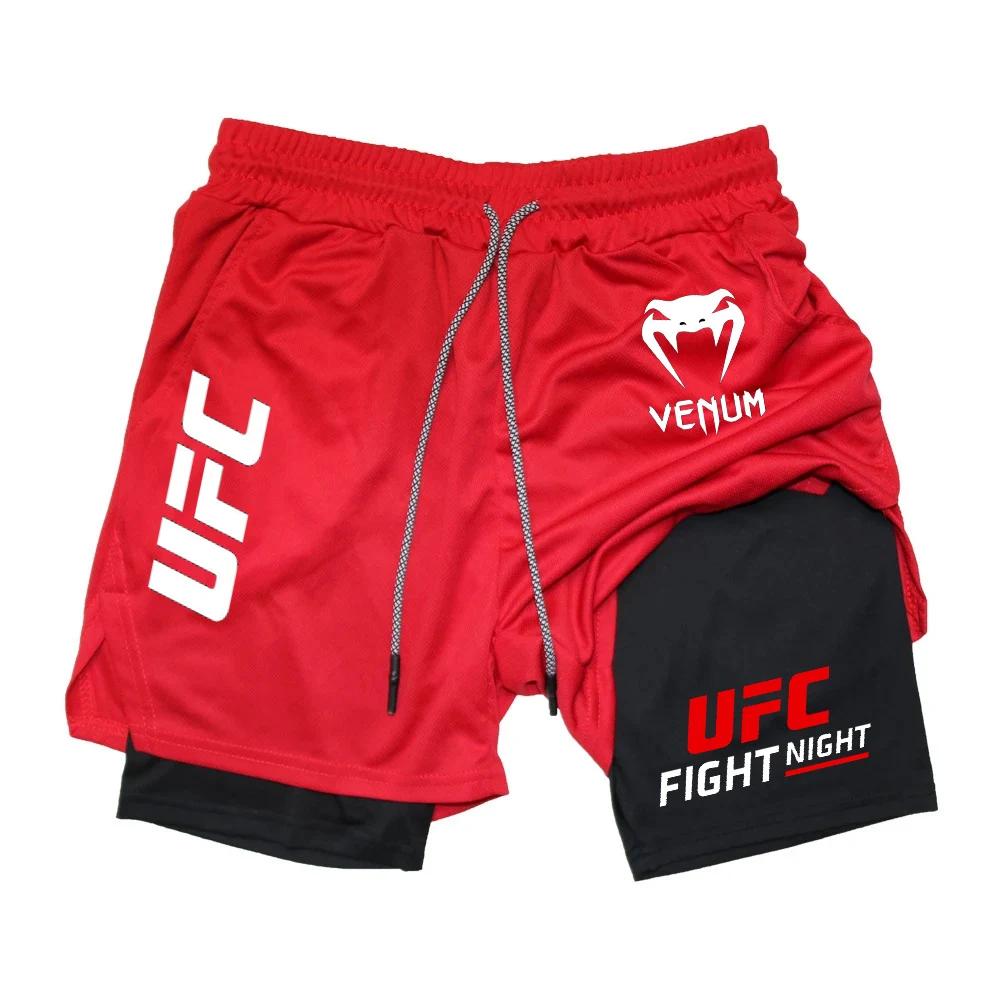 Шорты для бега UFC Fighting Fans, мужская спортивная одежда, шорты 2-в-1, мужские дышащие быстросохнущие шорты с двойной подошвой, спортивные шорты