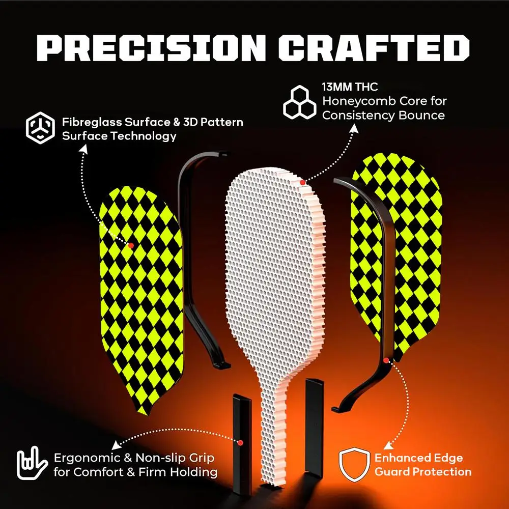 Набор весла для пиклбола в клетку, легкая ракетка из стекловолокна, 13 мм, сотовый сердечник, одобренная USAPA, для силы и вращения
