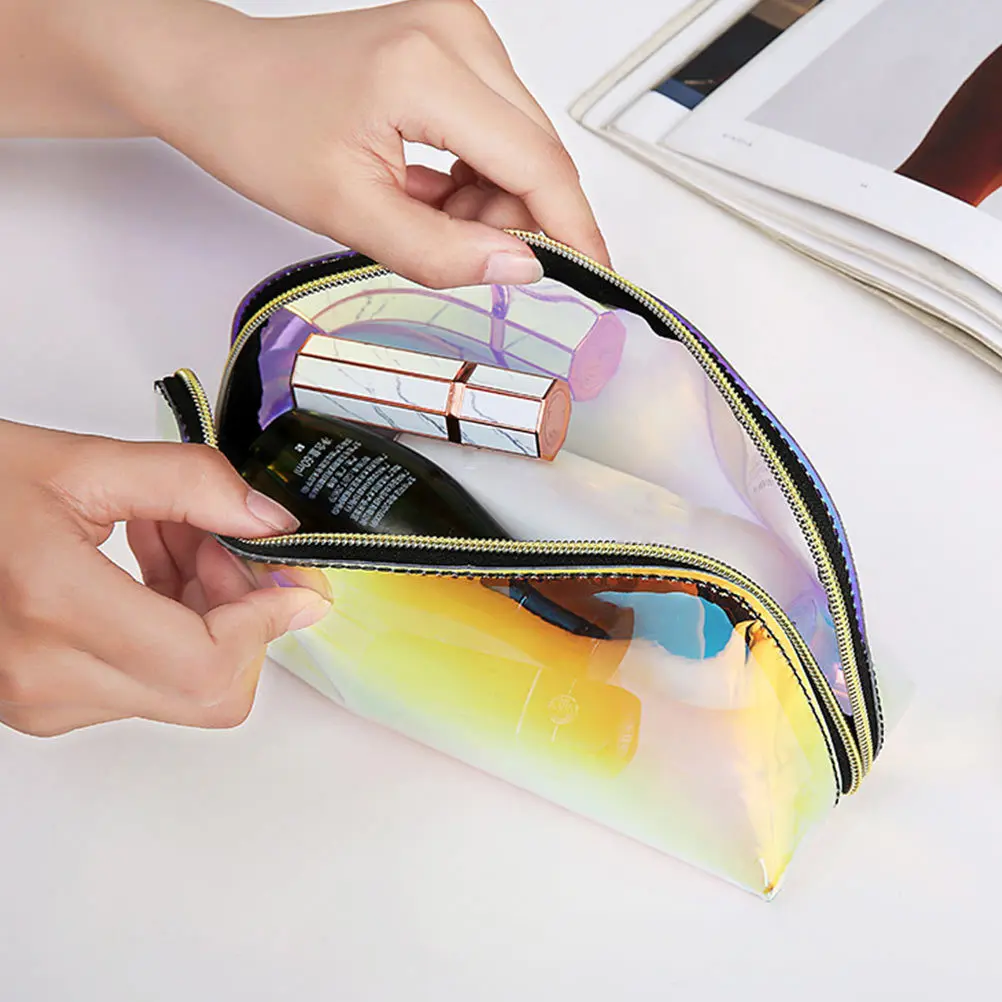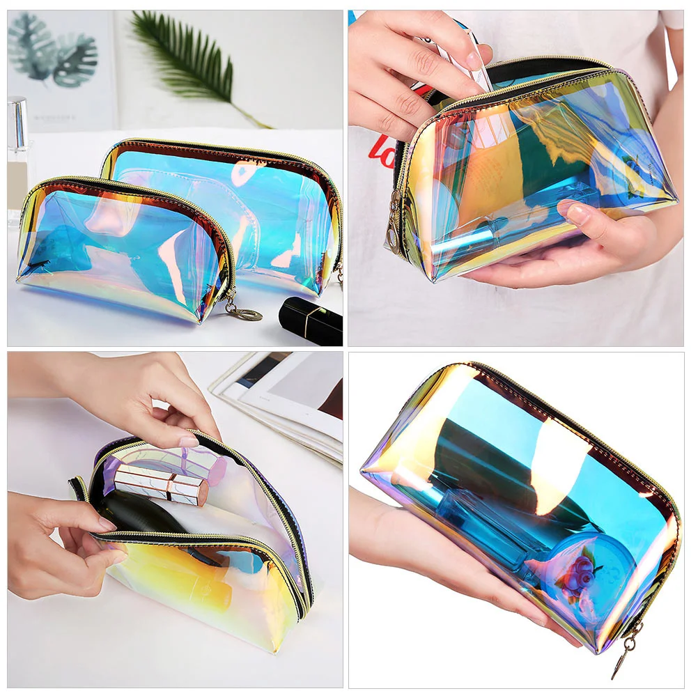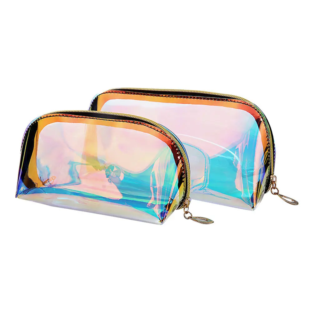 2 шт. голографическая косметичка модный органайзер для путешествий большая водонепроницаемая сумка для туалетных принадлежностей из ТПУ переливающаяся прозрачная