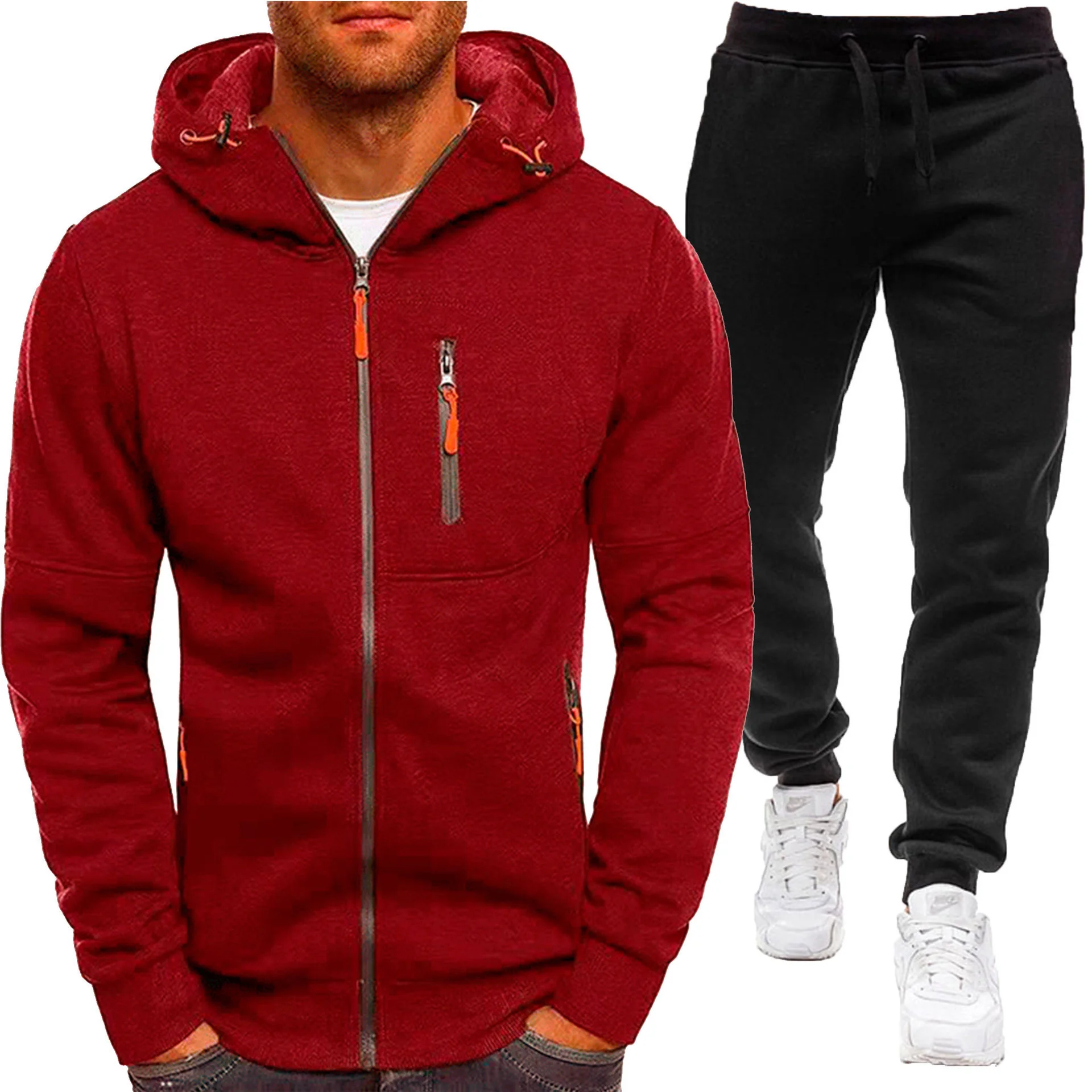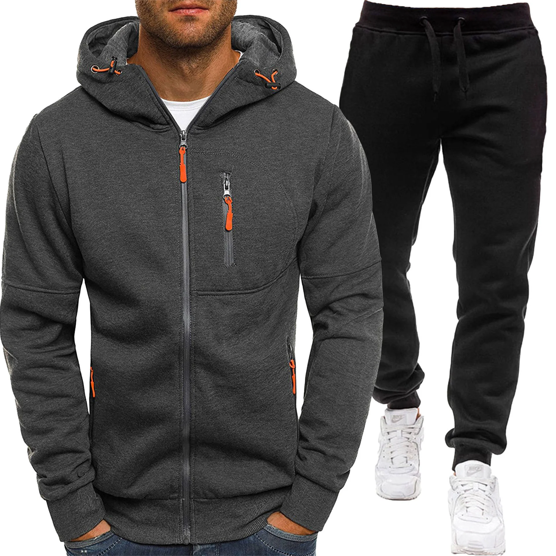 Осень/зима 202, новая повседневная мужская толстовка + брюки, комплект из двух предметов, комплект спортивной одежды на молнии с несколькими карманами для улицы