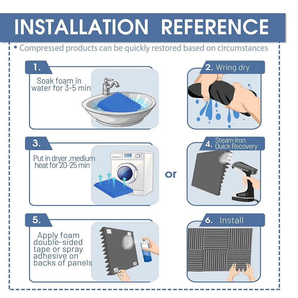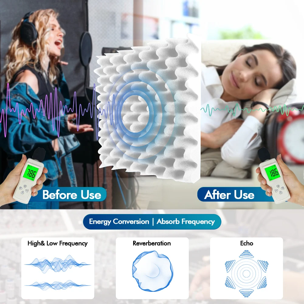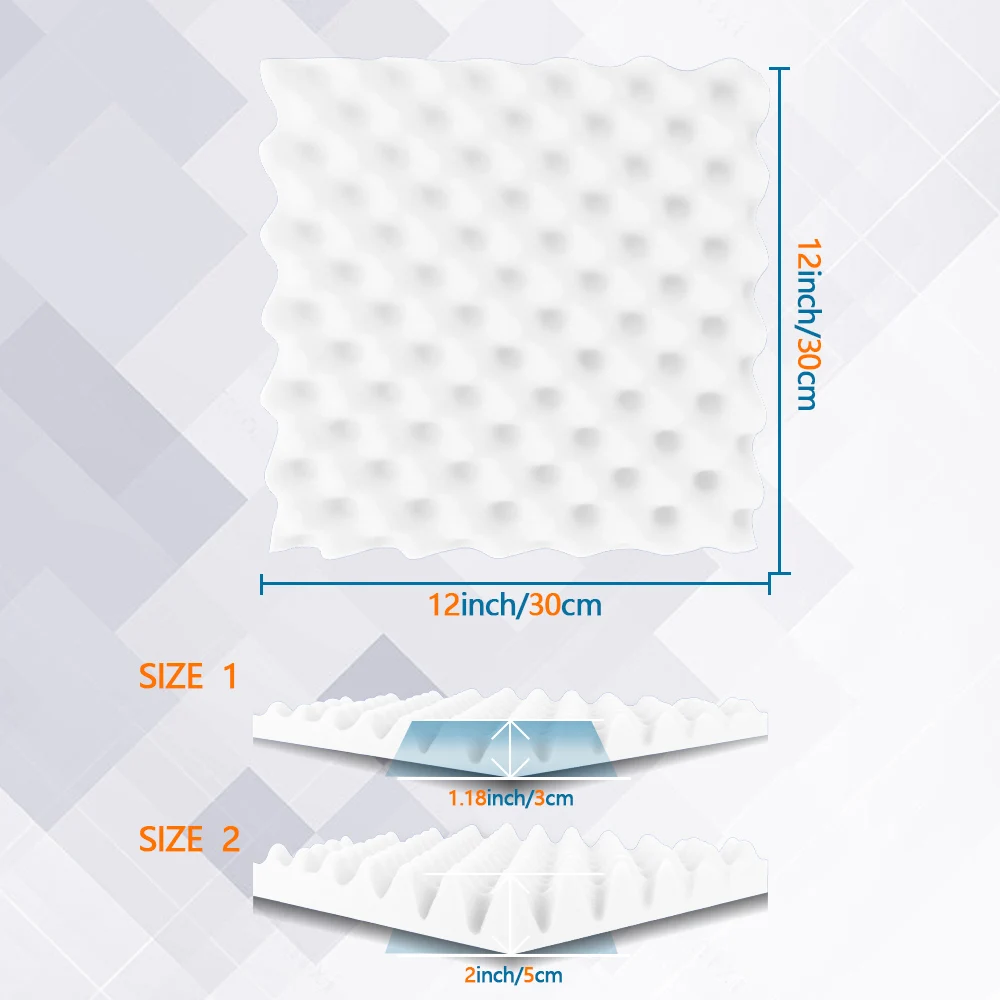12 упаковок акустических пенопластовых панелей 2 x 12 x 12 дюймов Звукоизоляционные пенопластовые панели Звукоизоляционные клиновые панели с шумоподавлением для домашнего офиса