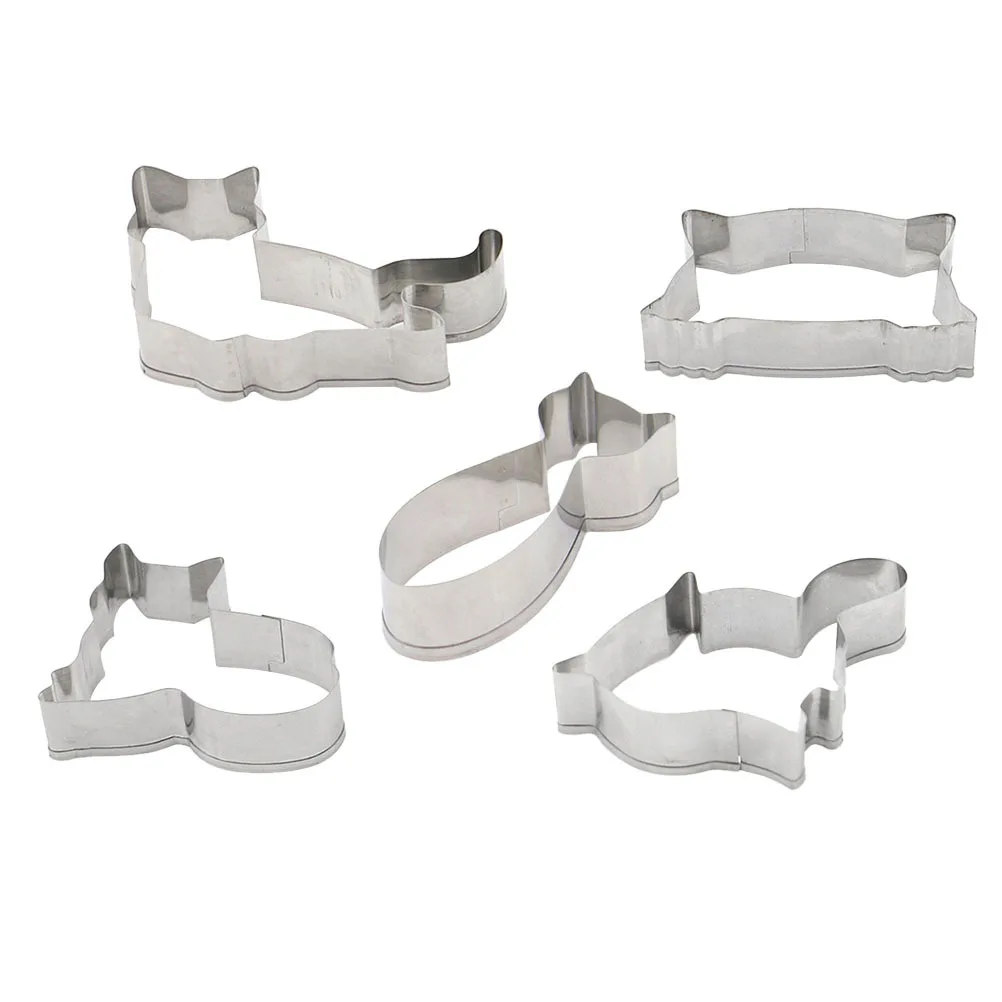 5 шт., формы для формочек для печенья из нержавеющей стали, дизайн в форме кошки для DIY, форма для выпечки шоколадной помадки, торта, кексов, экологически чистая