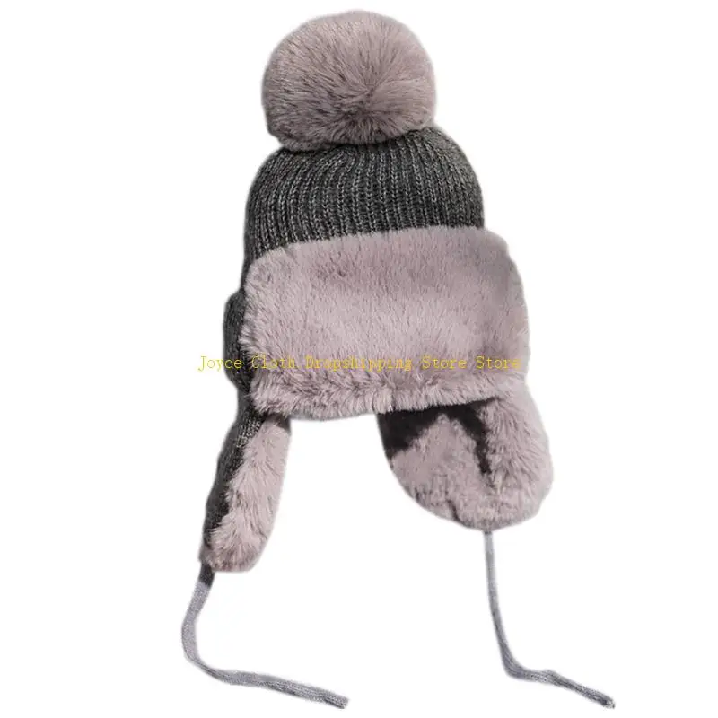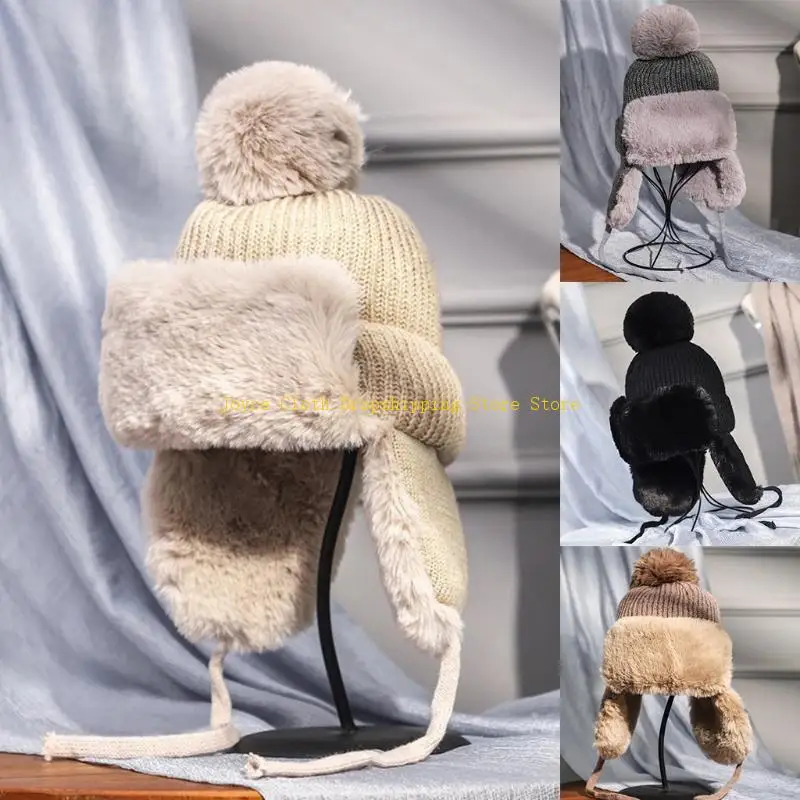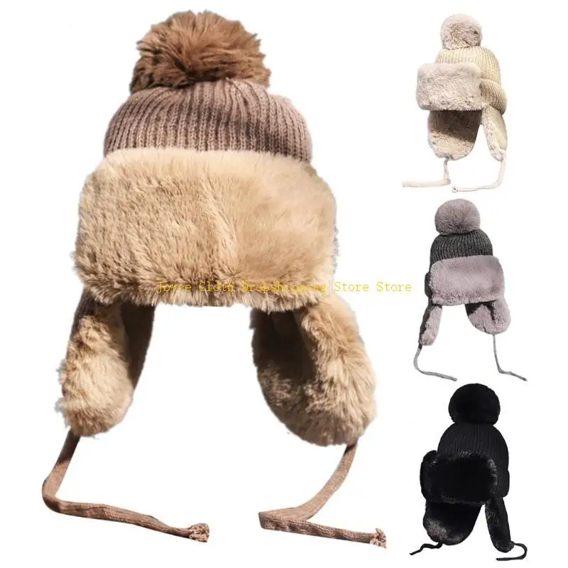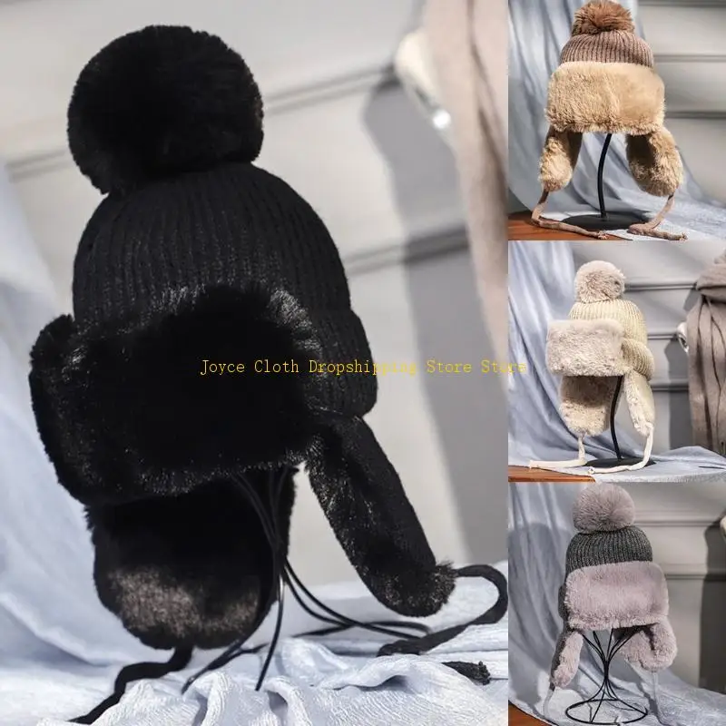 Женская зимняя вязаная шапка с помпоном, русская шапка-траппер, толстая пушистая плюшевая теплая теплая уличная зимняя лыжная