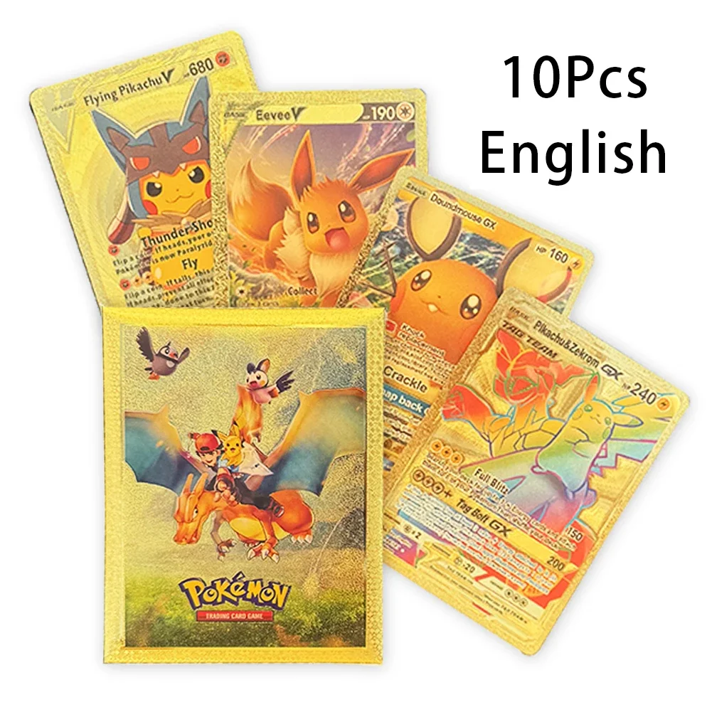 10 шт./1 пакетик карты покемонов, французские, английские, немецкие, испанские, Vmax GX, цветная энергетическая карта, Пикачу, редкая коллекция, боевой тренер, подарок для мальчика