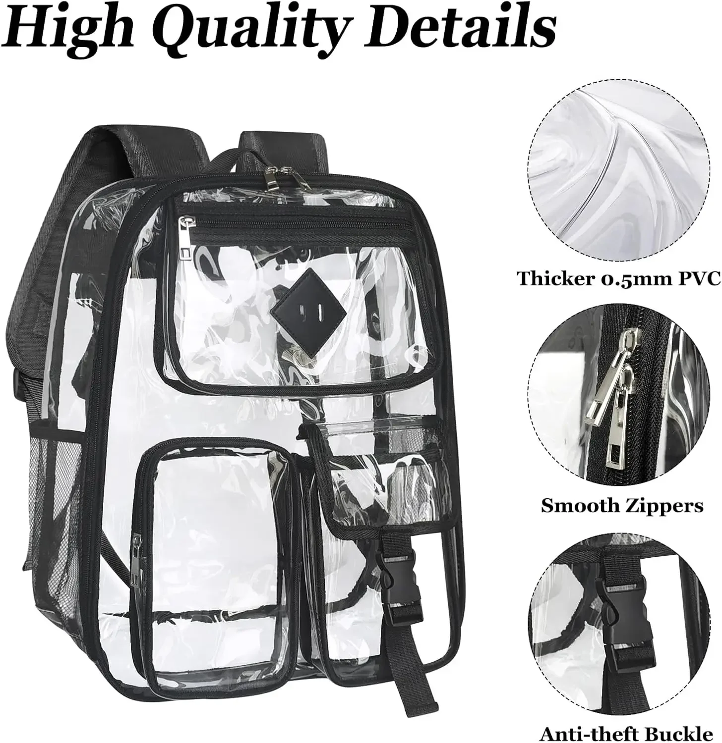 Прозрачный рюкзак Сверхмощный большой прозрачный рюкзак из ПВХ для работы, путешествий, одобренный стадином фестивальный рюкзак (черный)