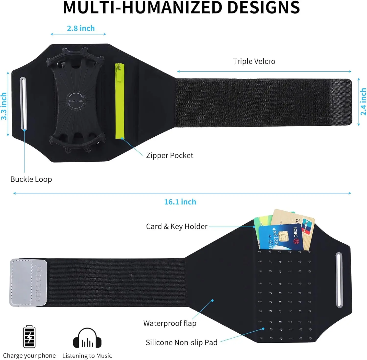 Съемный и 360° ° Вращающийся браслет — светоотражающий ремешок с карманным держателем на молнии — совместим с iPhone 16, 15, 14 Pro Max P