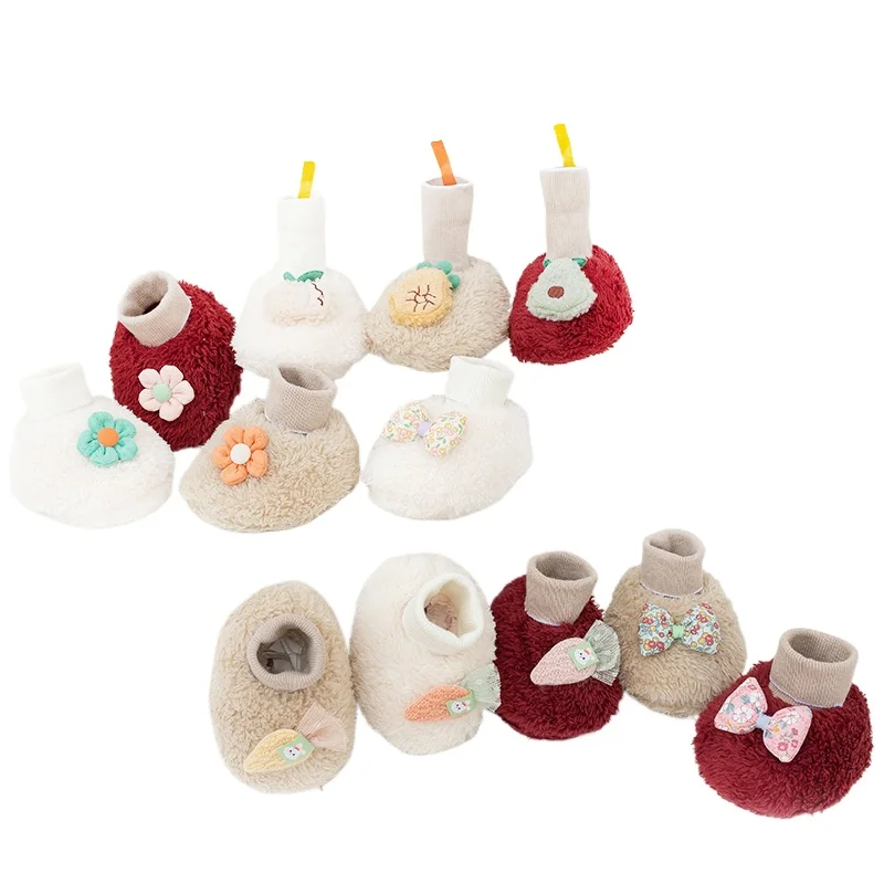 Осенне-зимняя детская плюшевая обувь на мягкой подошве, утолщенная теплая детская нескользящая хлопковая обувь, обувь унисекс для малышей на двойной флисовой подкладке