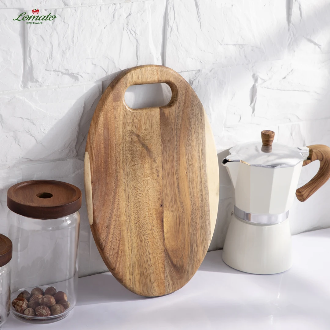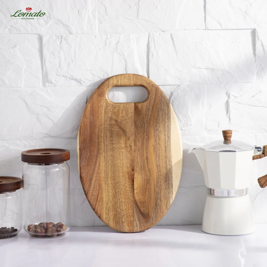 Эллиптическая дизайнерская разделочная доска из акации с многофункциональным деревянным подносом для кухонной утвари