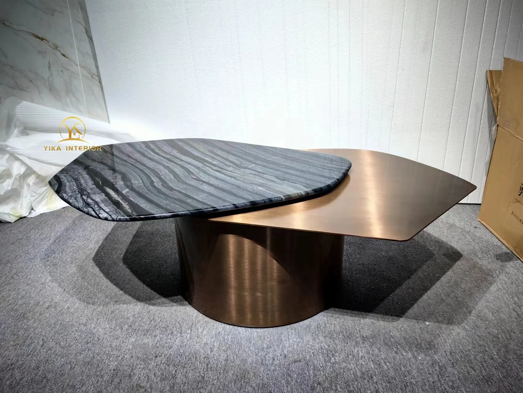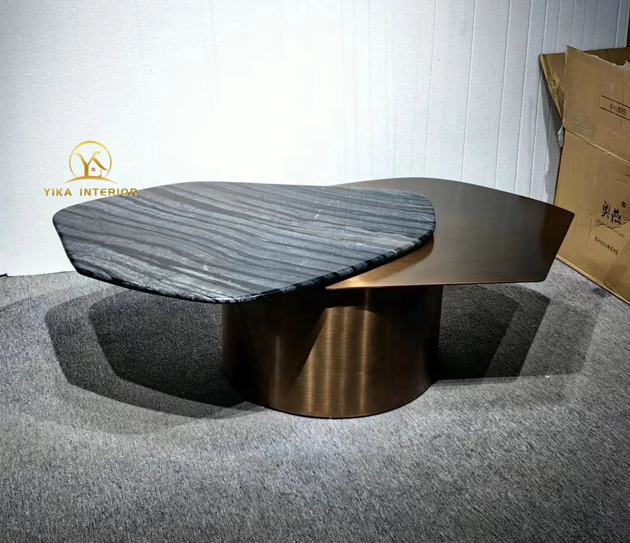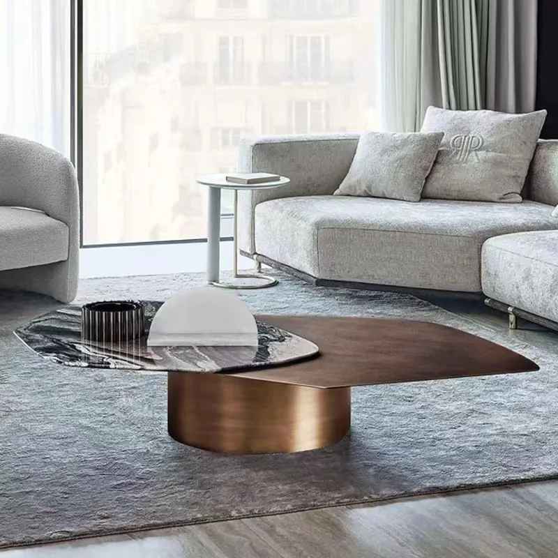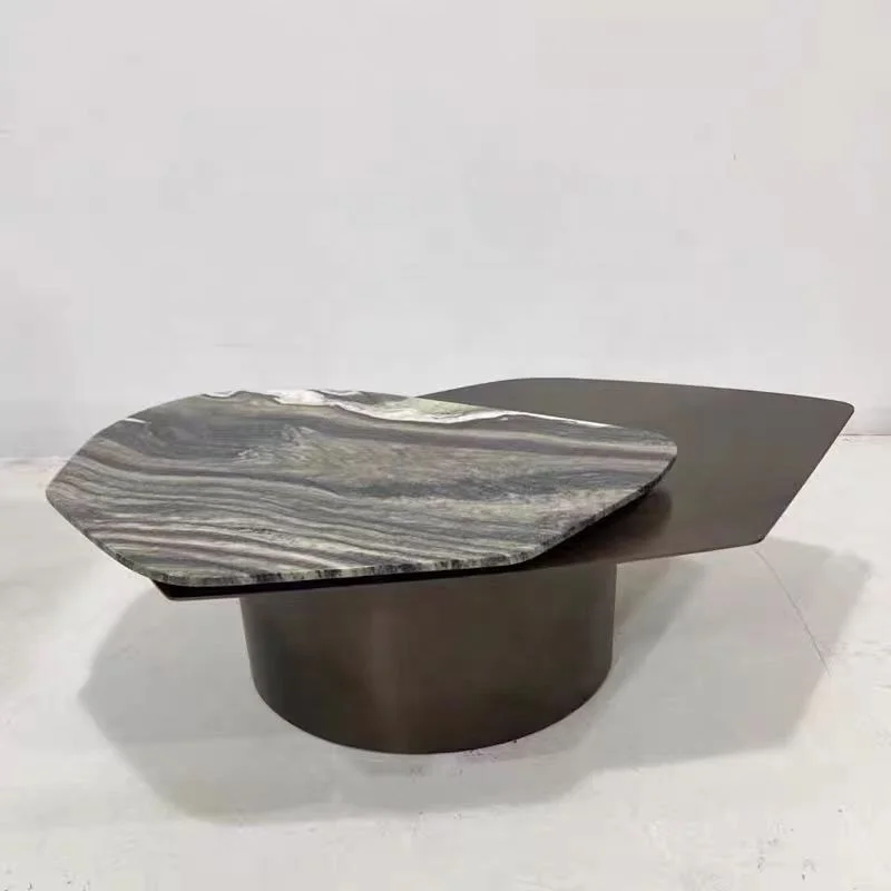 Классический бронзовый журнальный столик из нержавеющей стали с вращающейся столешницей из натурального мрамора, золотой металлический мраморный комбинированный центральный стол