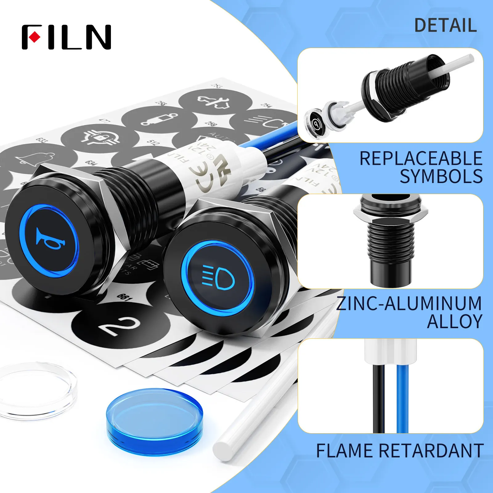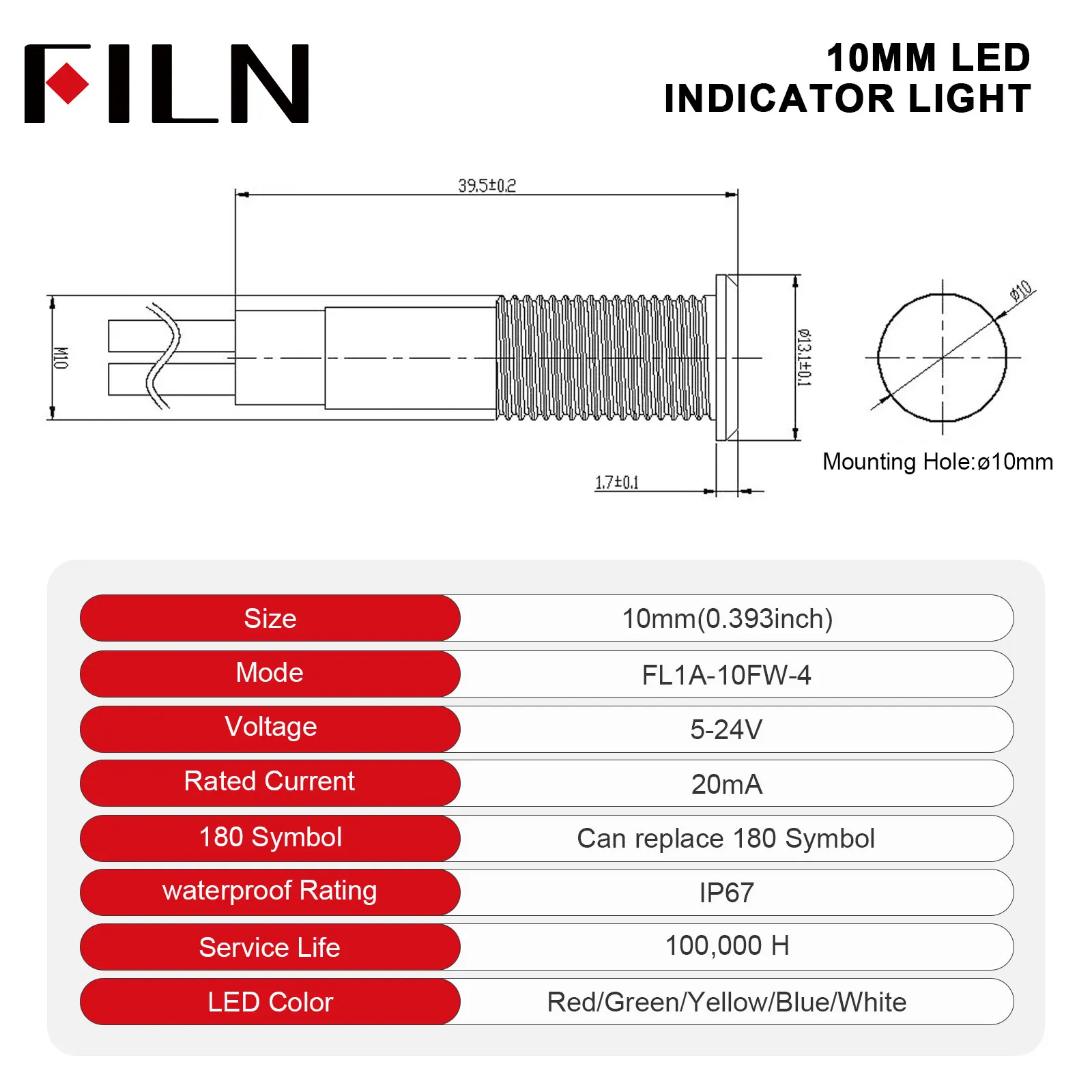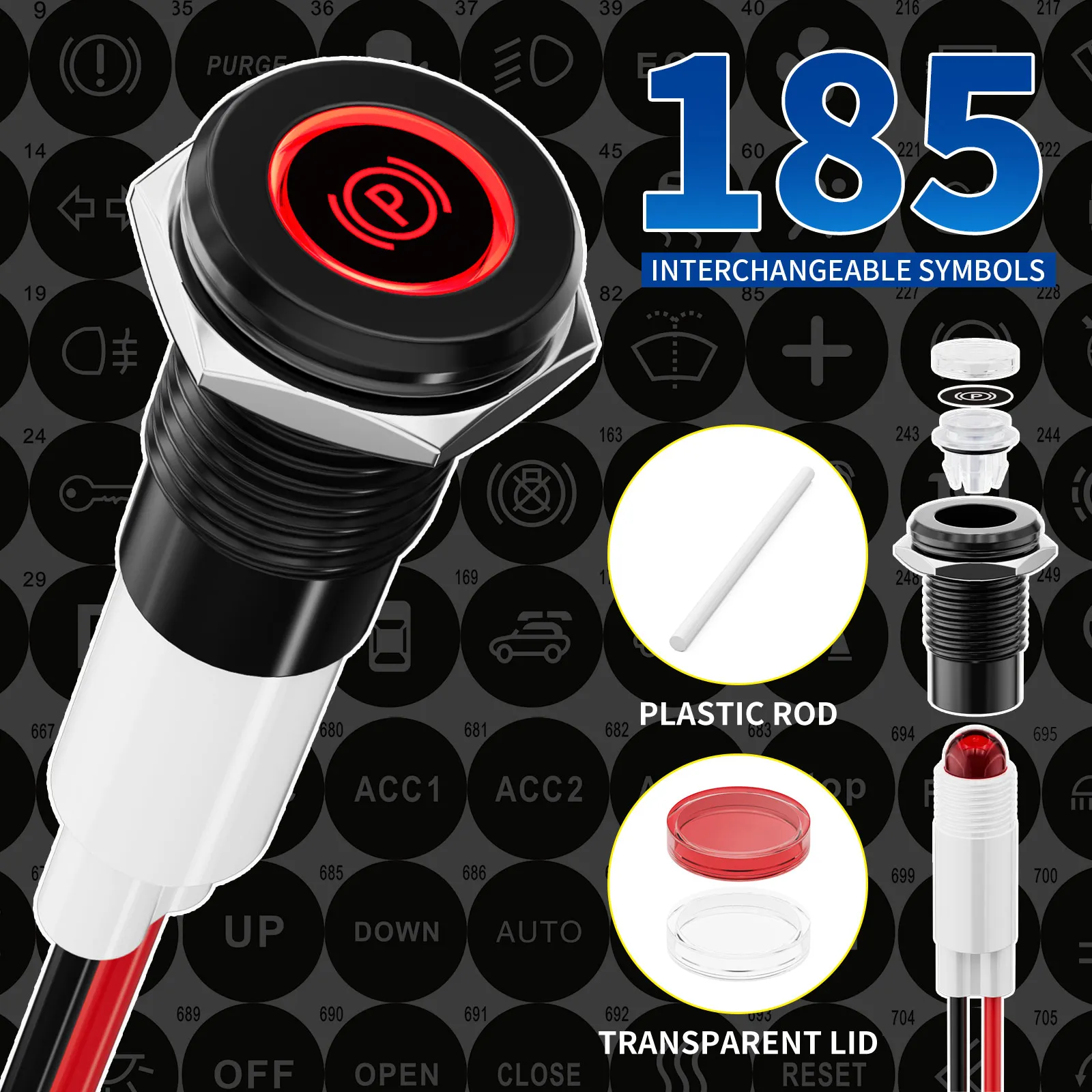 185 символов 10 мм светодиодный металлический индикатор водонепроницаемый