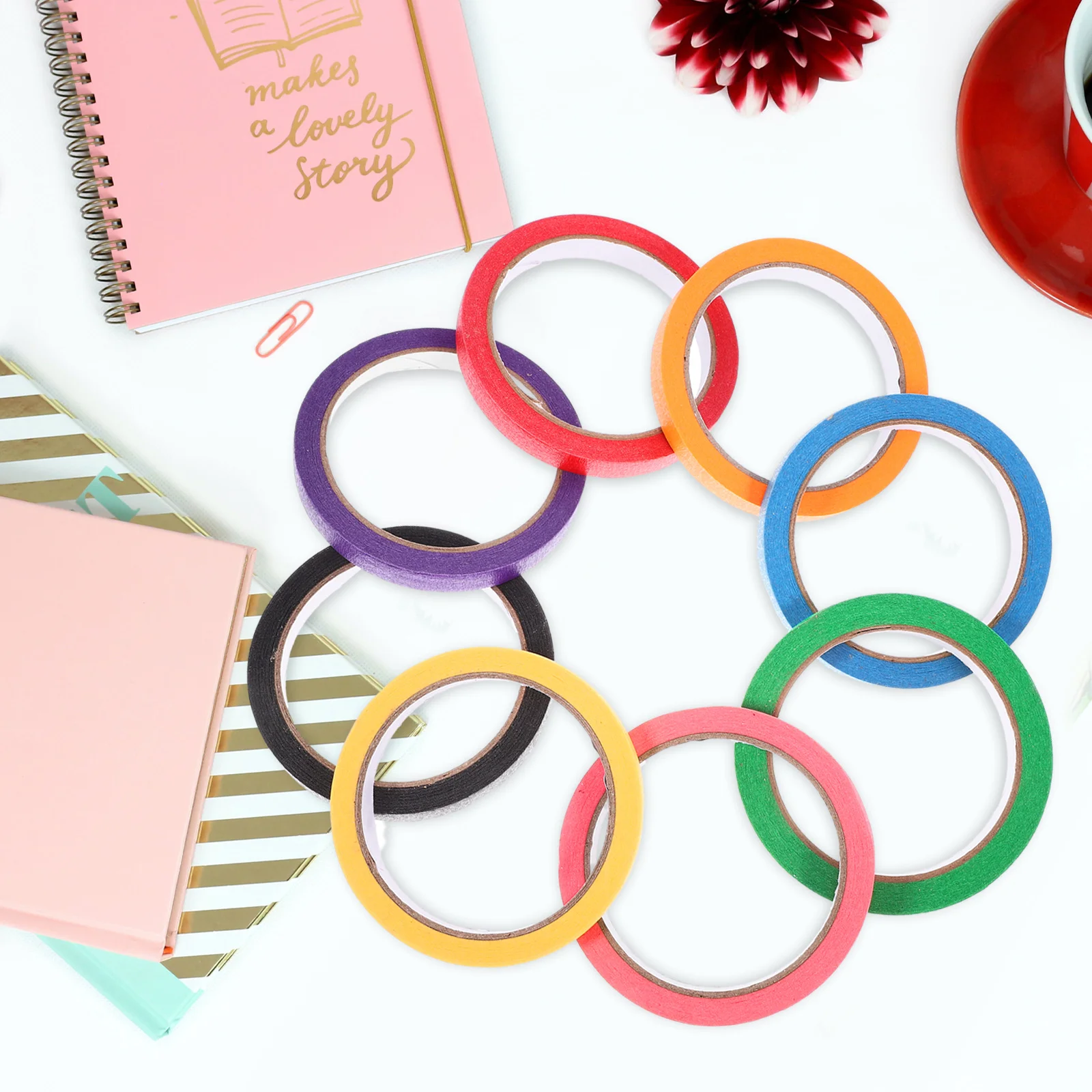 8 рулонов цветной маскирующей декоративной бумажной ленты для рисования, маркировочной ленты, записываемой, без остатков