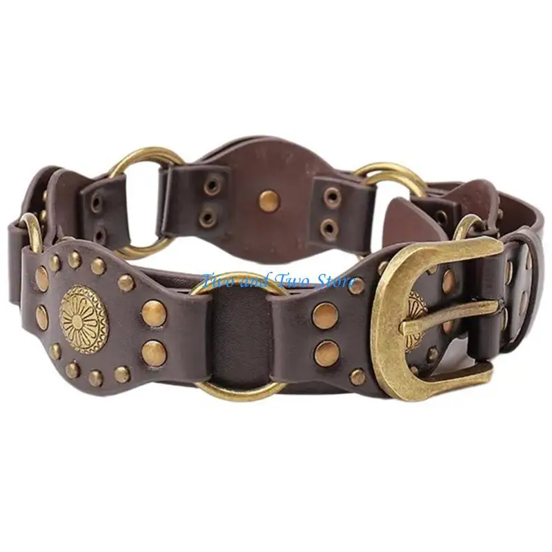 HX6F поясной ремень в стиле рок-н-ролл с крутой резьбой и шипами для ковбоя, классический ремень для пастушек
