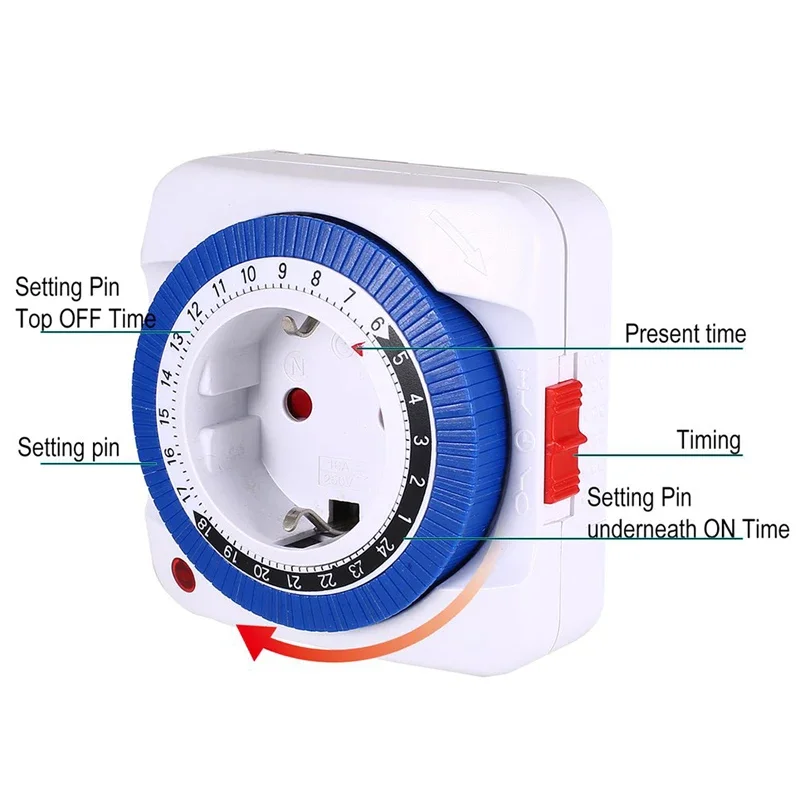 24-часовой таймер из ЕС/США, вилка таймера с механическим заземлением, программируемая умная розетка с обратным отсчетом, автоматическое отключение питания