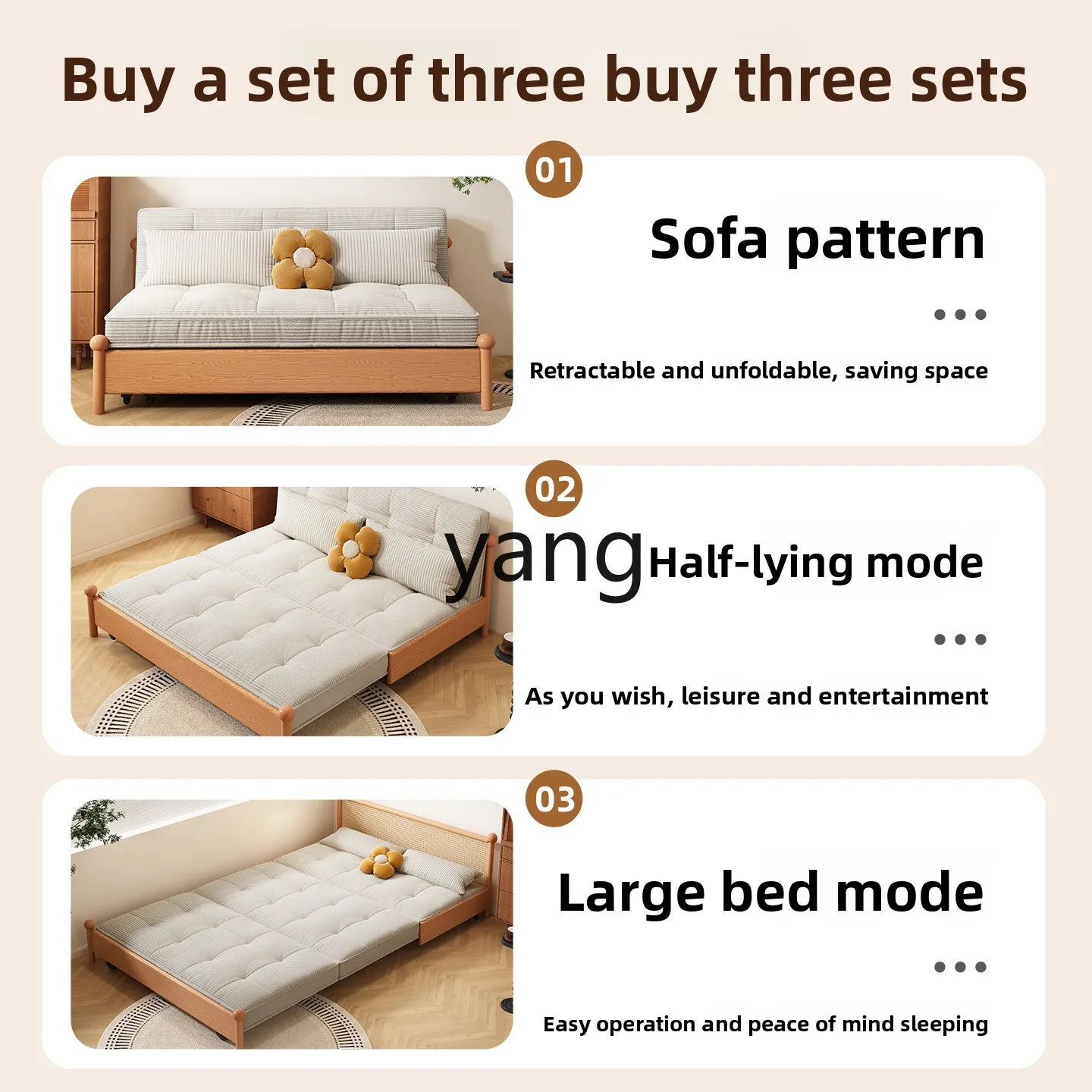 LHH диван-кровать из цельного дерева, складной двойного назначения, двойной выдвижной диван для гостиной