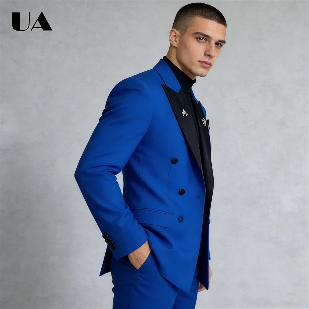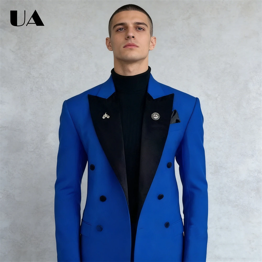 Двубортный мужской деловой костюм, комплект из двух предметов для мужчин, смокинг на заказ XXS-7XL, официальный костюм для выпускного вечера