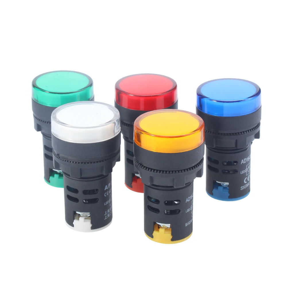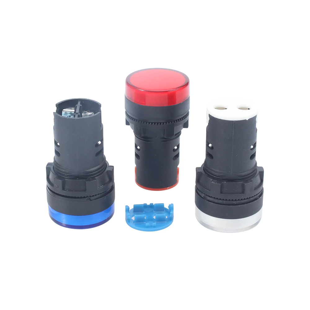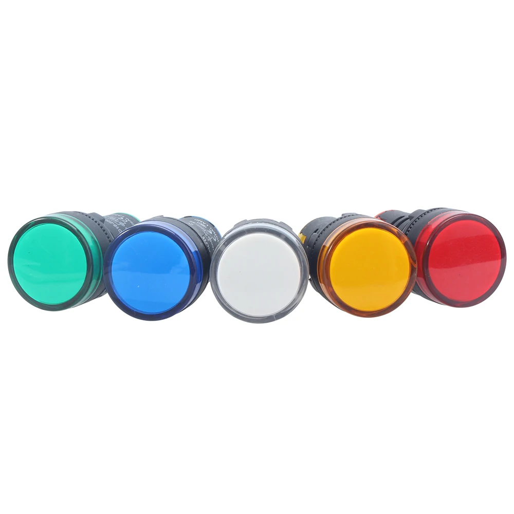 1 шт., 12 В, 24 В, 220 В, 380 В, 22 мм, пластиковый светодиодный индикатор мощности, контрольная сигнальная лампа, красный, зеленый, синий, белый, желтый, янтарный